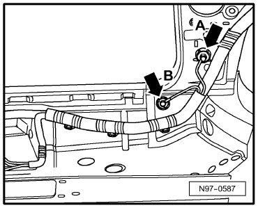 (47) - Ground Connection (in front right footwell) -Arrow B-