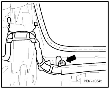 (77) - Ground Connection (on left lower B-pillar) -Arrow-, not applicable from May 2006