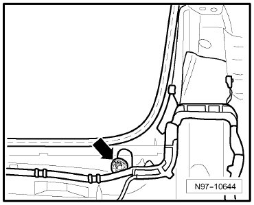 (43) - Ground Connection (on right lower A-pillar) -Arrow C-, not applicable from May 2006