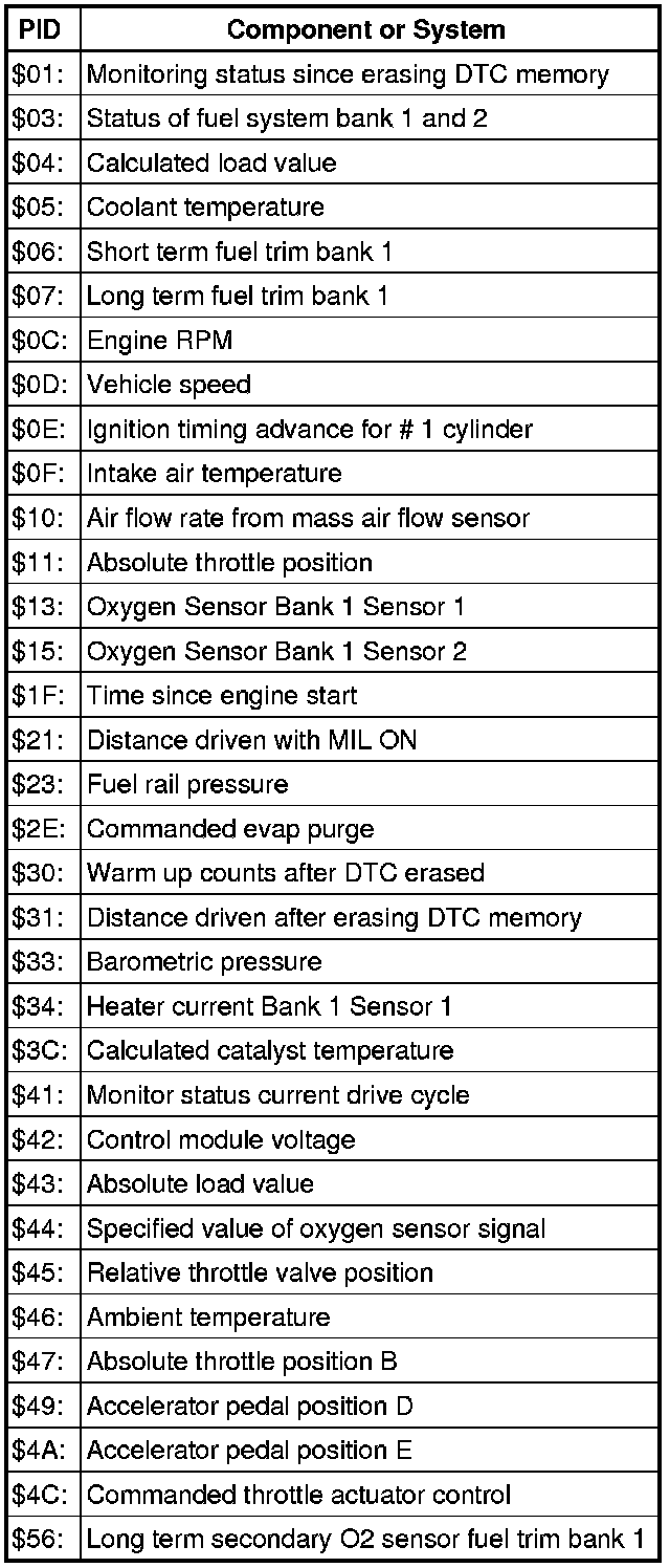 Diagnostic Mode 01 makes it possible to access current emissions-related measured values and diagnostic data. The original measured values (no replacement values), input and output data and system status information are displayed using Diagnostic Mode 1.