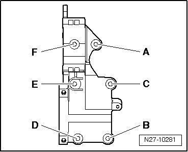 - Tighten the bolts on the auxiliary component bracket in the following sequence: