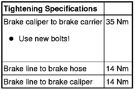 This procedure applies only for replacing or when performing subsequent service work on brake caliper.