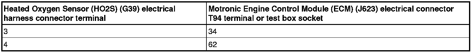 - Using a multimeter, check the Oxygen Sensor (O2S) Behind Three Way Catalytic Converter (TWC) (G130) electrical harness connector terminals to the Motronic Engine Control Module (ECM) (J623) electrical harness connector terminals for an open circuit according to the wiring diagram.
