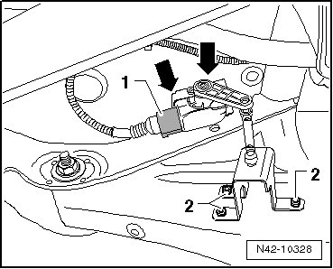 - Unclip the speed sensor wire out of the bracket - 1 - - arrows -.