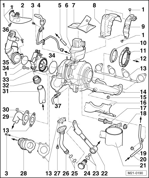 • Unit with turbocharger and exhaust manifold (cannot be replaced separately)