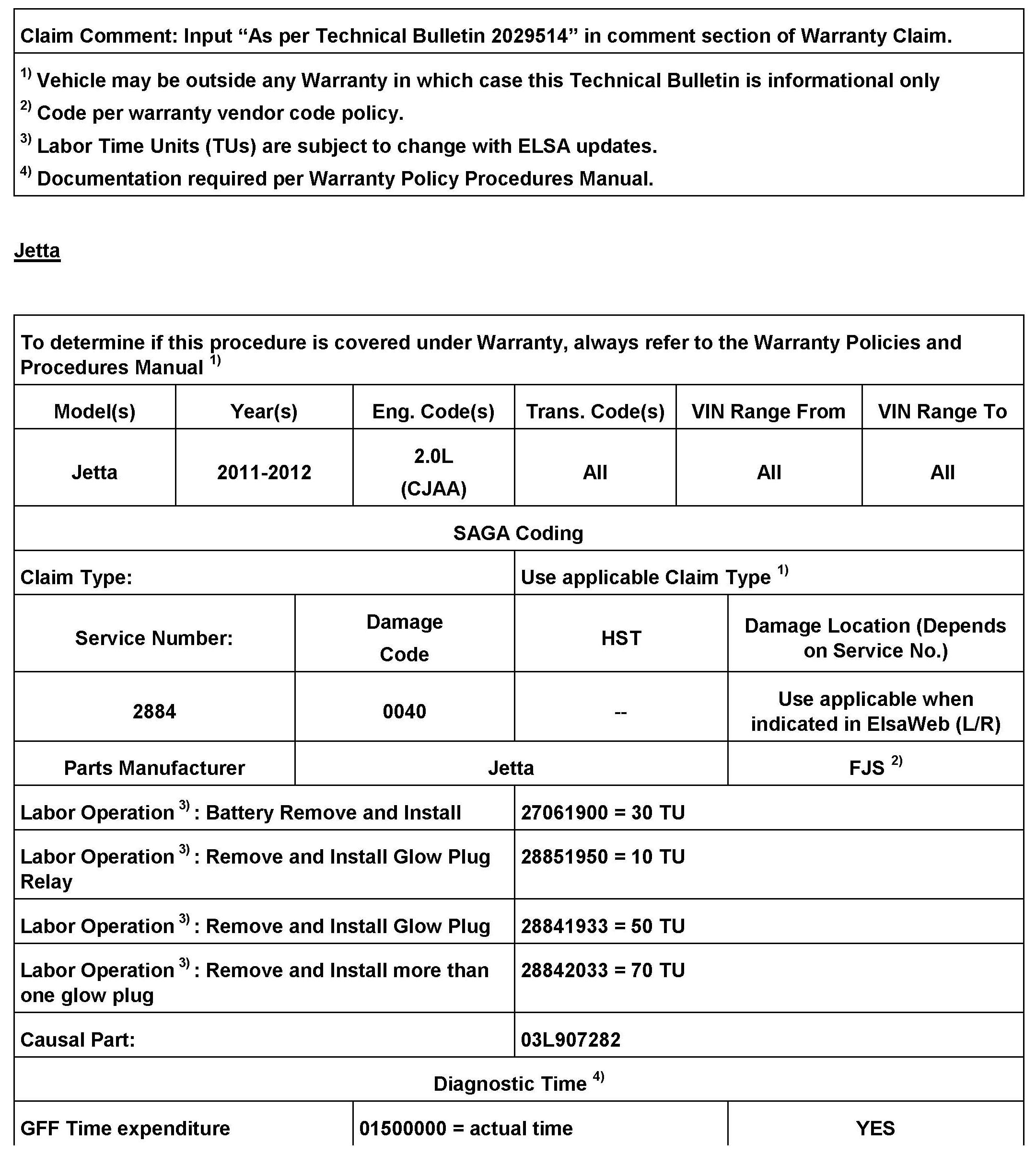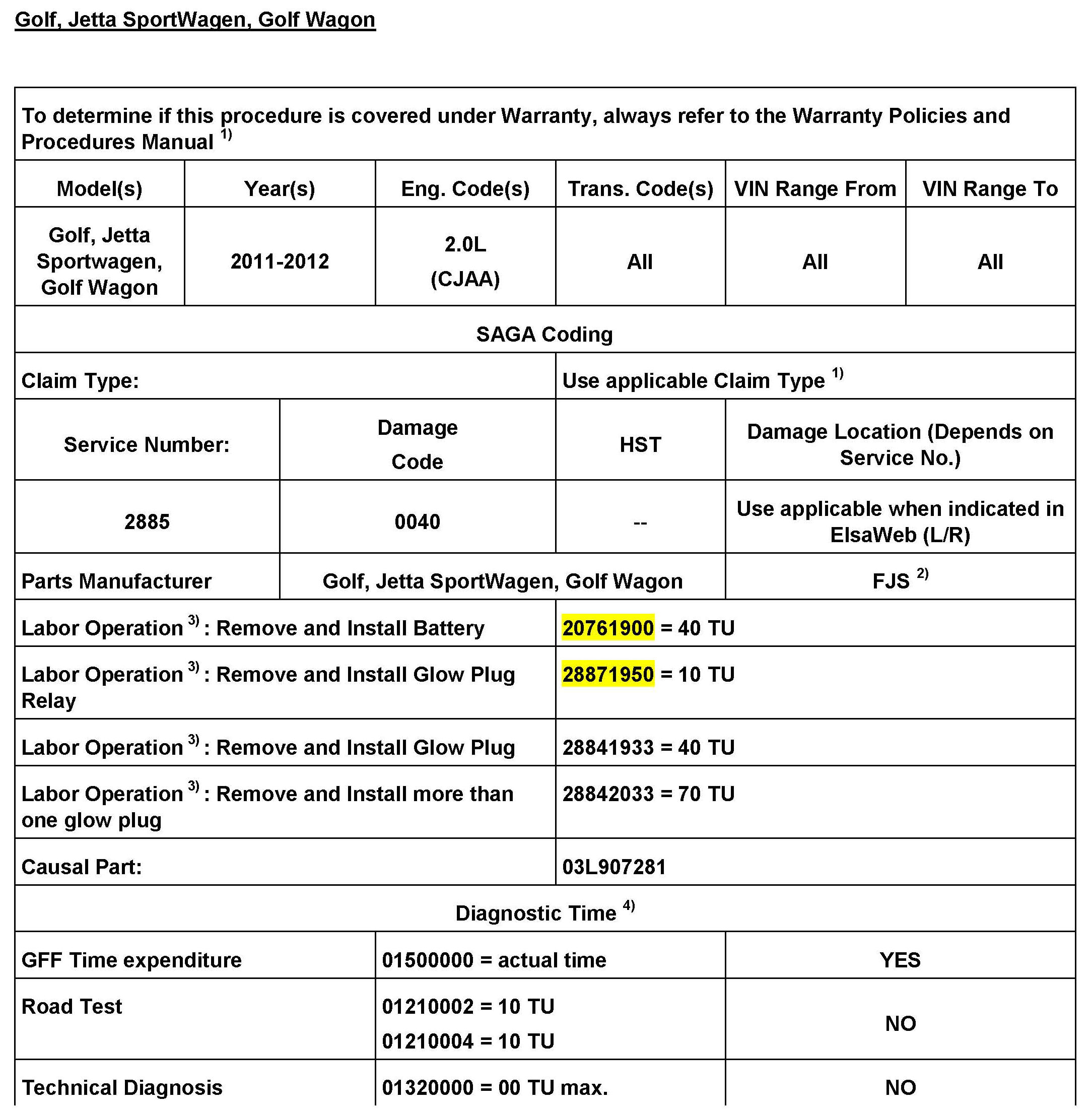 2029514 *Supersedes T.B. V281203 dated October 24, 2012 to update outdated Golf labor operations.*