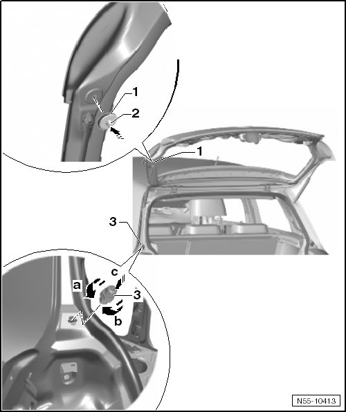 - Adjust the adjusting buffer - 3 -. Refer to => [ Rear Lid Adjustment Buffer, Adjusting ] Rear Lid Adjustment Buffer, Adjusting.
