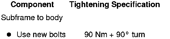 - Secure the position of the subframes using 2 (T10096) to 20 Nm.