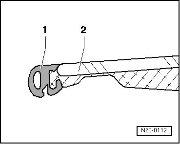 - Pull new seal - 1 - at rear panel edge in center, beginning from bottom to top, onto glass panel for sunroof - 2 -.