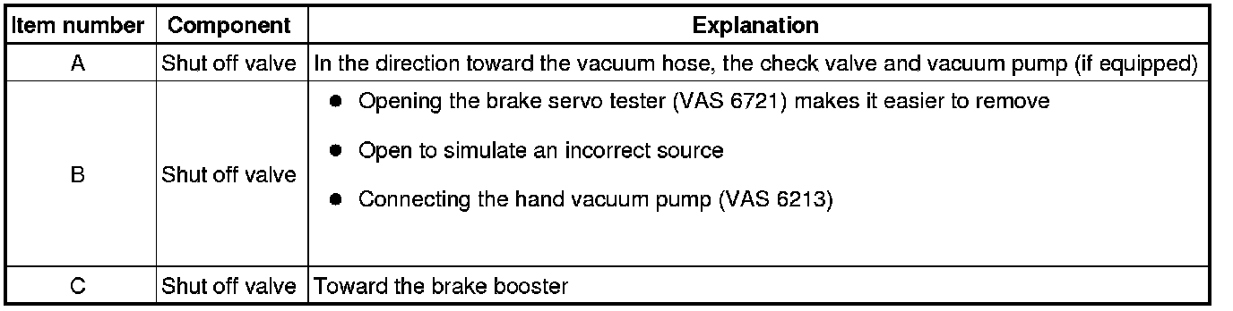 - Close the shut off lever - C - after creating the vacuum to check the brake servo tester (VAS 6721) vacuum up to the intake manifold or up to the vacuum pump.