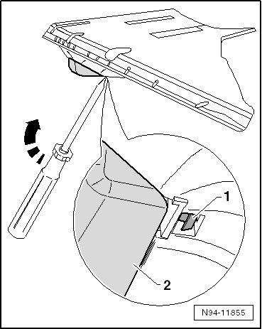- Move the screwdriver in - direction of arrow - and pull the clip - 1 - downward.