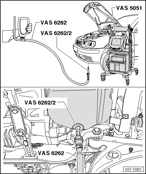 • It may be necessary to shorten the pipe on the adapter for oil filling (VAS 6262 A).