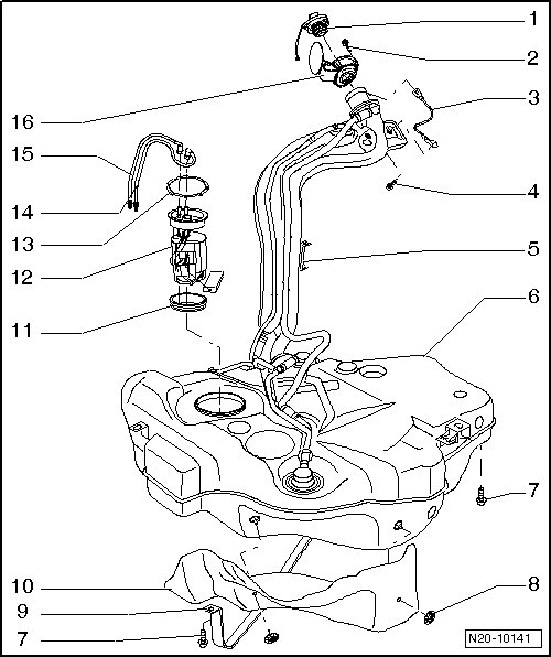 19 - Fuel Pump Control Module -J538- with Fuel level sensor -G- and Transfer fuel pump -G6-