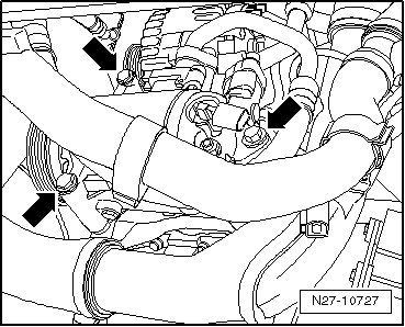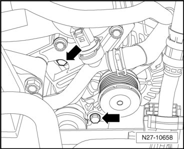 Before removing ribbed belt, mark the top side and direction of travel. When installing, pay attention to correct running direction and installation position. If the belt is installed in the opposite running direction or is positioned incorrectly, the belt will fail!
