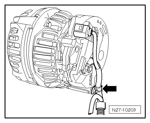 - Screw wire retainer - arrow - firmly to rear side of generator in 3 o'clock position.