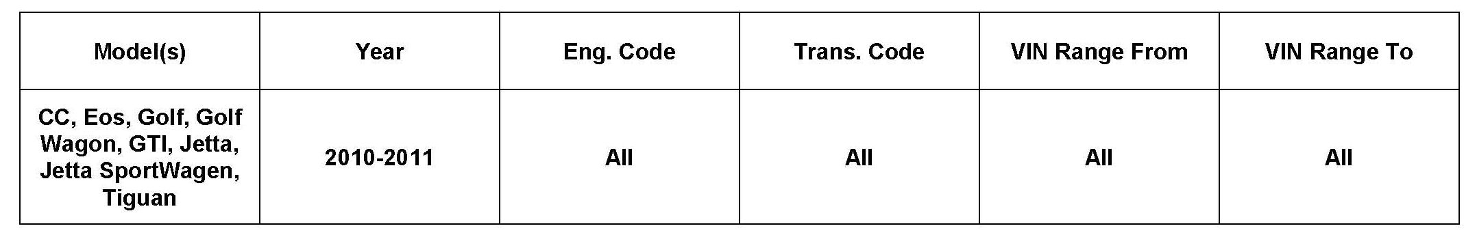 Complaints not related to a RDS concern where a 1K0035180AD is used in place of a 1K0035180AC will be charged back.