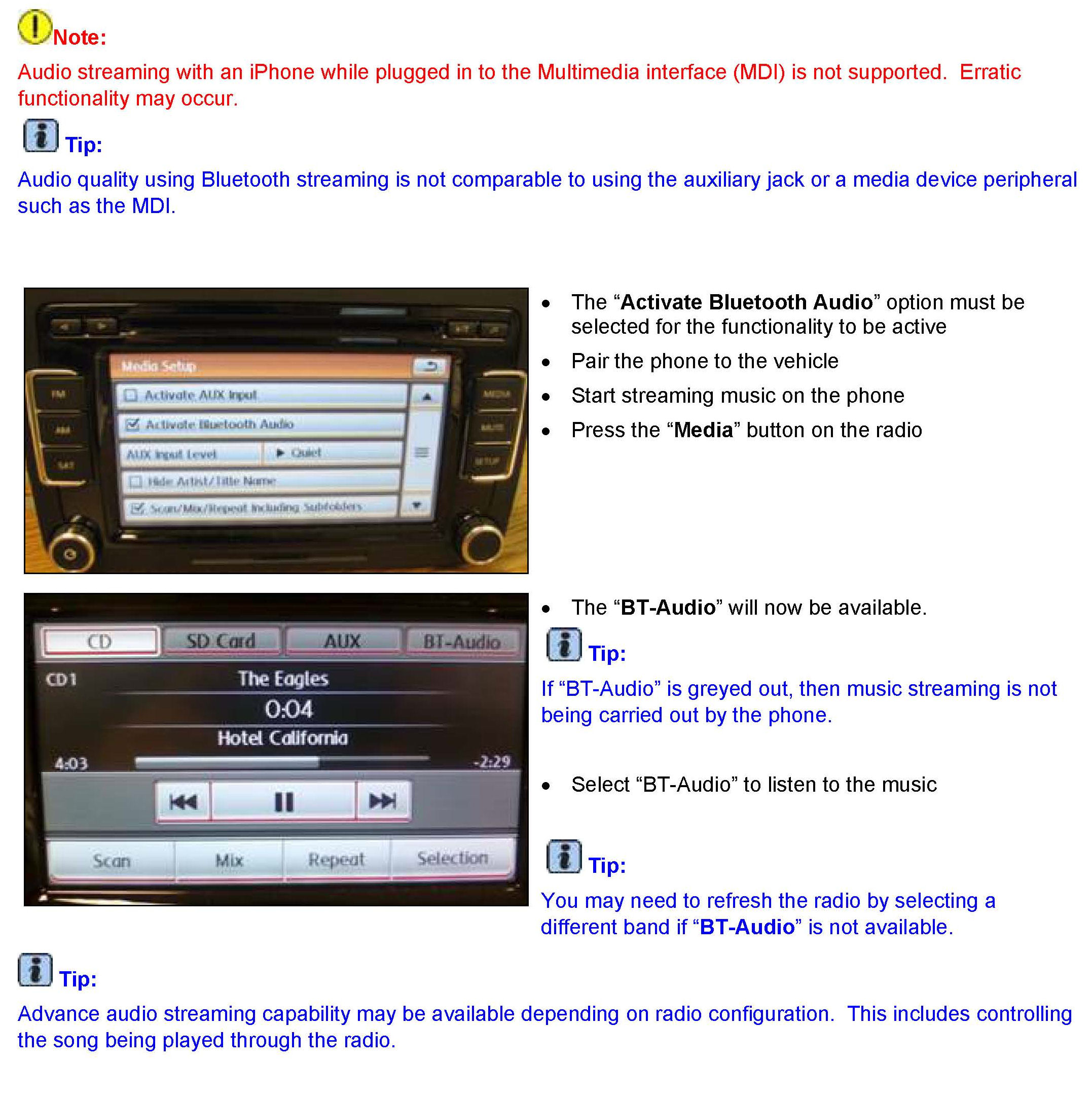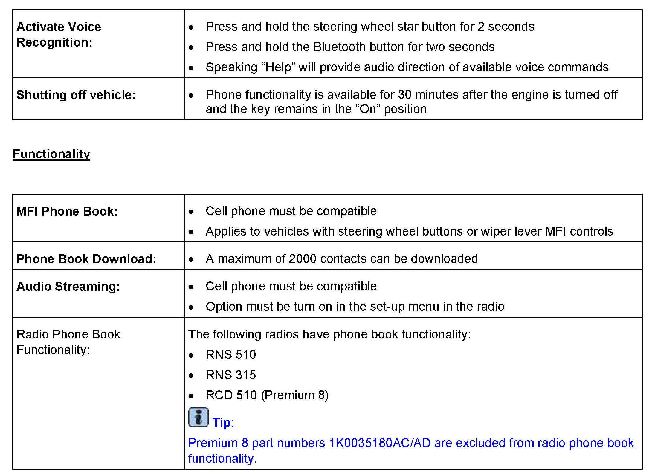 This technical bulletin can be used for the RNS 315 equipped with the internal Bluetooth module.