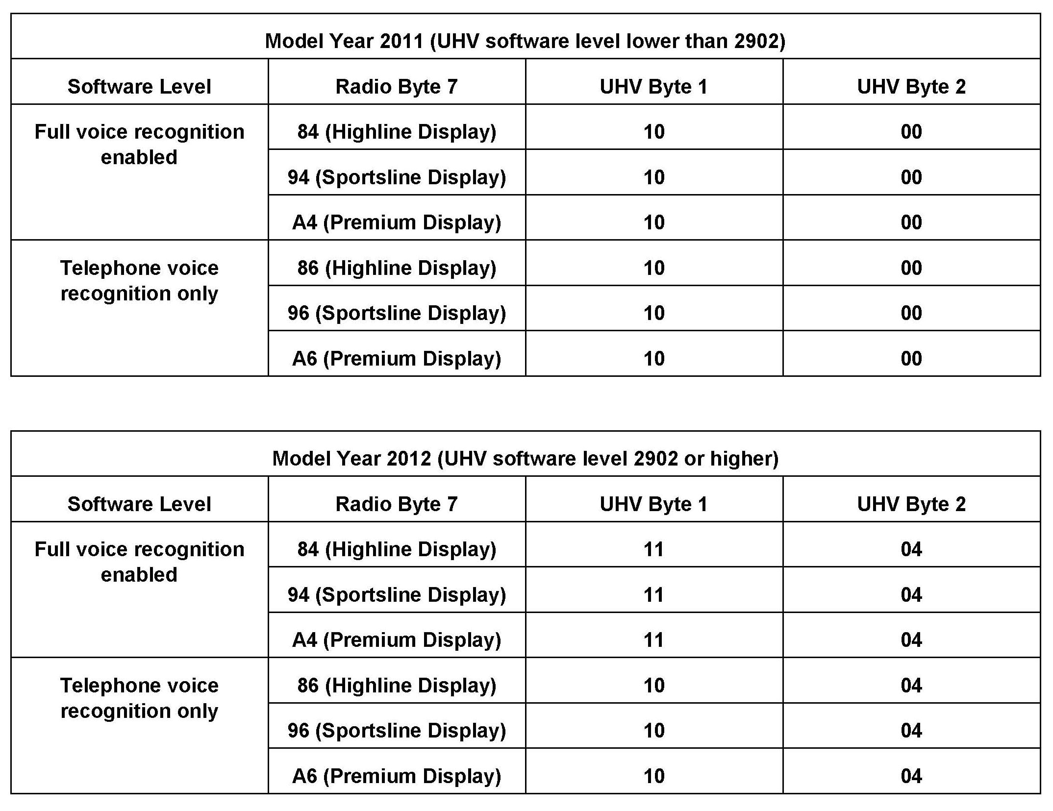 ^ With full voice recognition enabled (ability to change station, tracks etc.) and UHV software 2902 or higher, Byte 1 of the external Bluetooth(R) module needs to be "11".