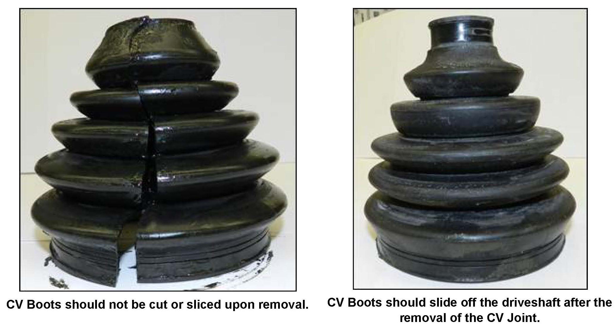 Claims will not be accepted if the CV Boot is cut or sliced.