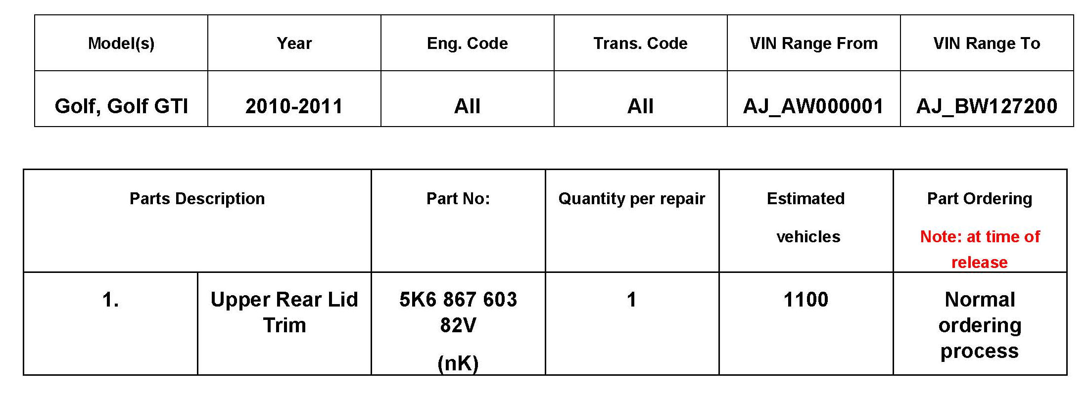 ^ Replace the upper trim panel Part No. 5K6 867 603 82V (nK) on the rear lid, see Repair Manual Group 70 Interior Trim in ElsaWeb.