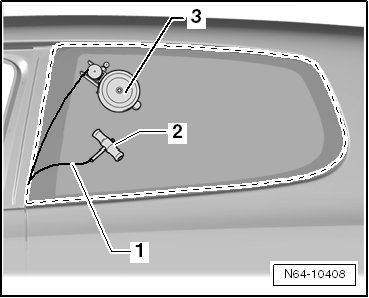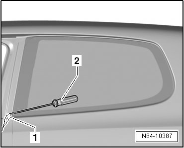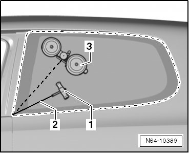 - Pull cutting cord - 1 - through adhesive sealant at place shown in picture into vehicle interior at lower area of rear window using (V.A.G 1474/2) from (V.A.G 1474 A).