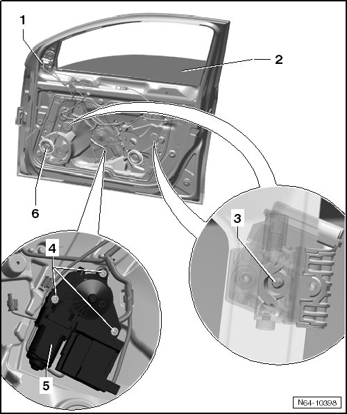 - Lower the door window - 2 - until the clamping screws - 3 - are accessible.