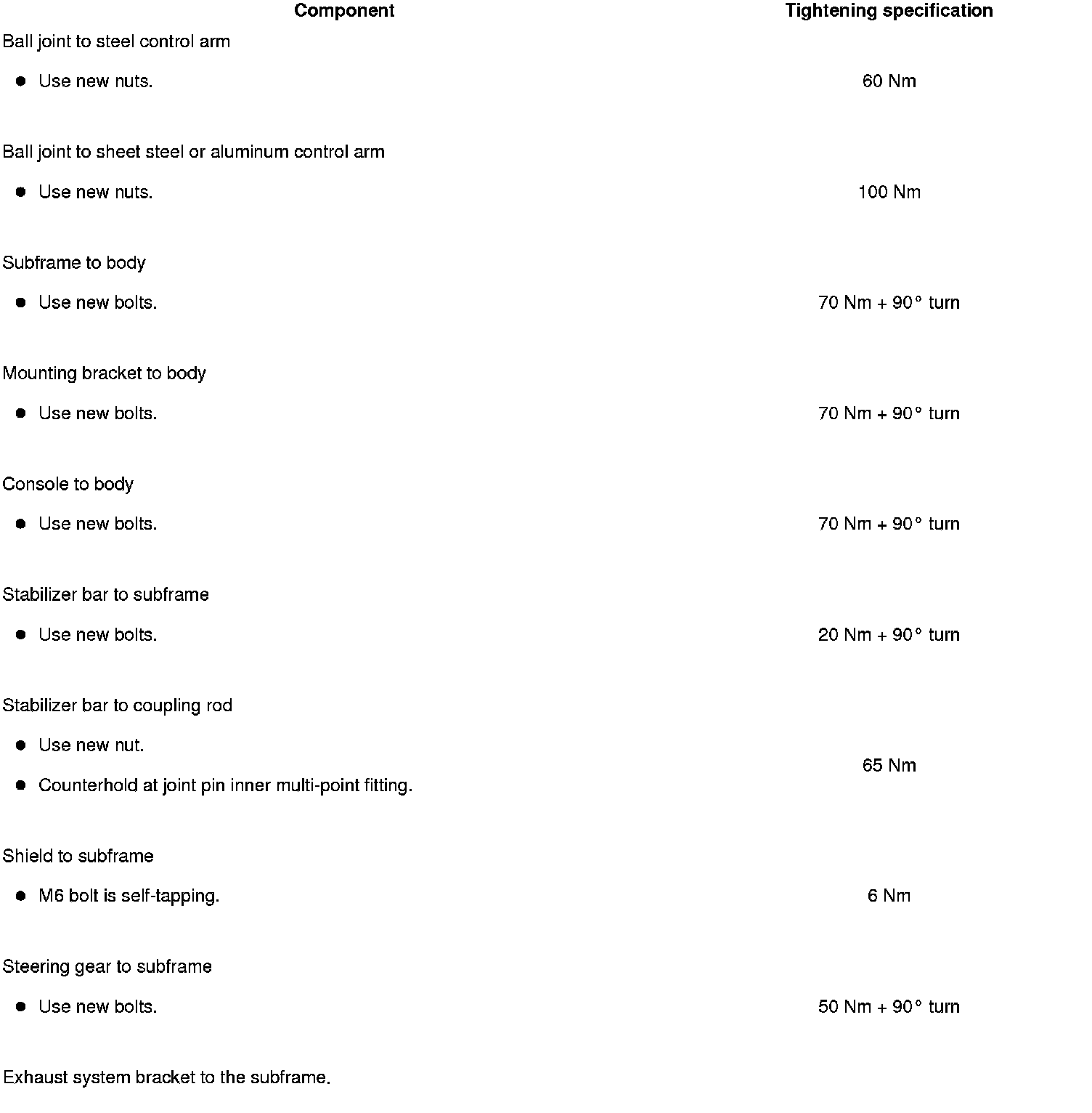 - Subframe, securing, refer to => [ Subframe and Consoles, Securing ] Front Suspension.