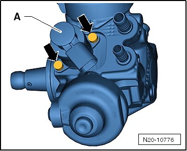 - Remove the bolts - arrows - and carefully remove the fuel metering valve - A -.