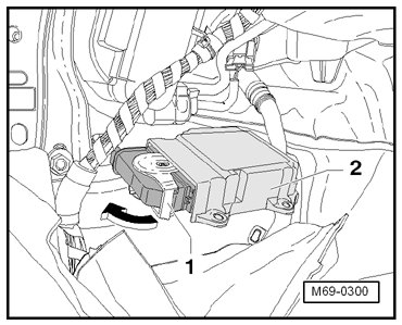- Unlock the connector - 1 - in - direction of arrow - and remove the wiring harness form the control module - 2 -.