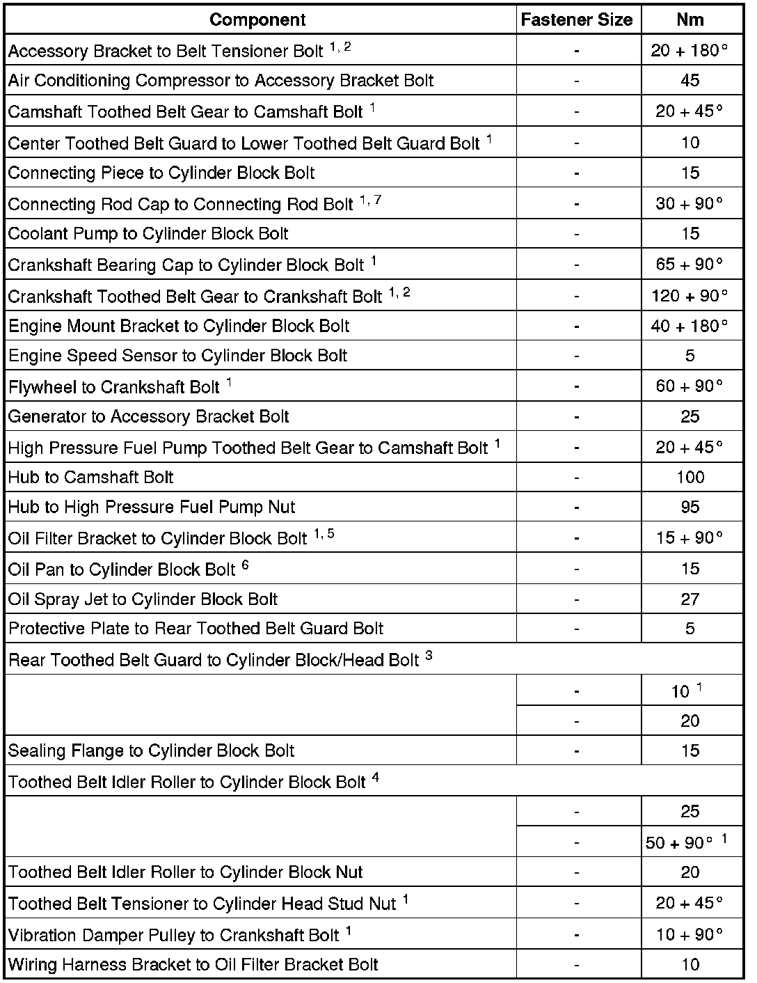 Crankshaft, Cylinder Block -Fastener Tightening Specifications