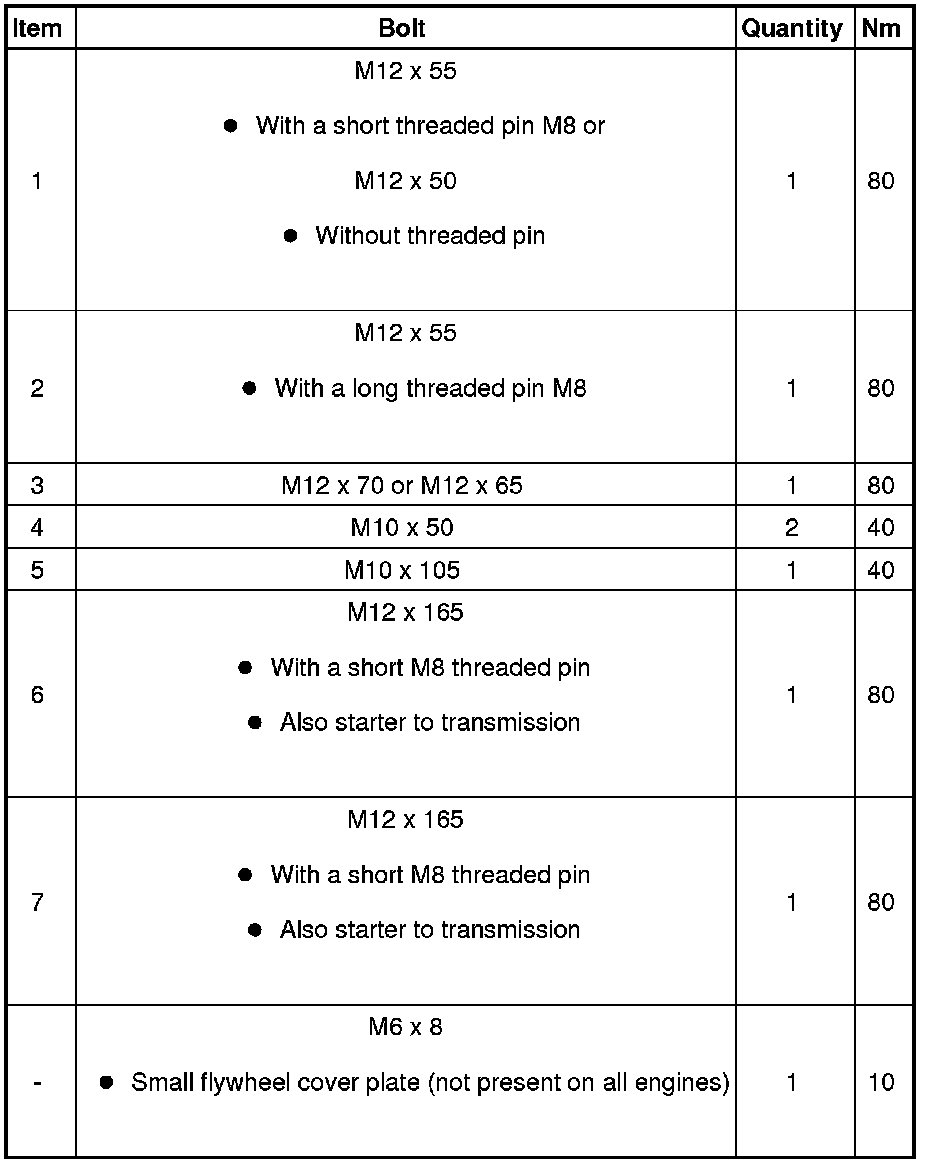 Transmission to Engine Tightening Specifications