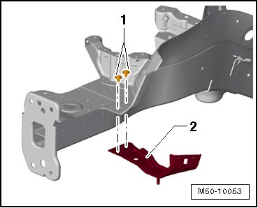 - Remove the bolts - 1 - and the fender brace - 2 -.