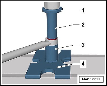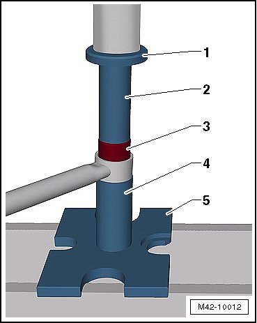 - Mount the special tools as illustrated and remove the bonded rubber bushing.