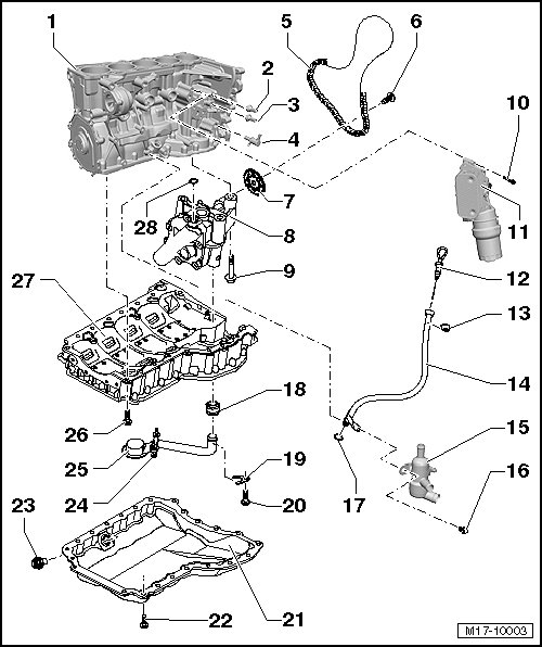 • Removing and installing, refer to => [ Oil Filter Bracket with Attachments Overview ] Service and Repair.