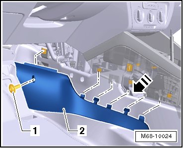 - Remove the trim - 2 - from the center console in - direction of arrow -.