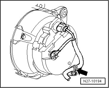 - Disconnect the B+ wire - arrow - from the generator.
