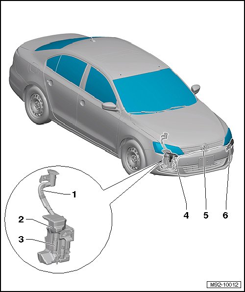 • Lift cylinder for spray nozzles, removing and installing, refer to=> [ Headlamp Washer Lift Cylinder with Spray Nozzles ] Headlamp Washer Lift Cylinder with Spray Nozzles.