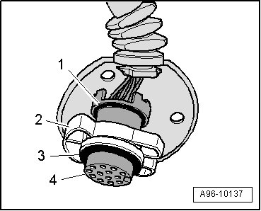 - Remove the connector- 2 - from the trailer socket - 1 - in - direction of arrow -.