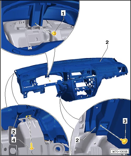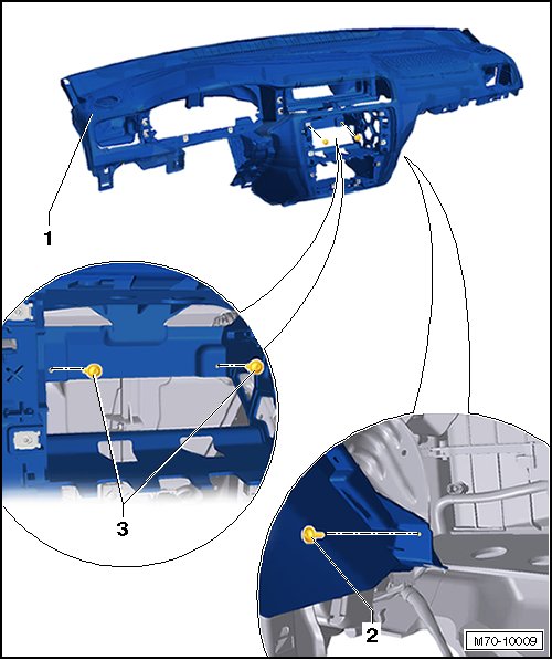 - Remove the screw - 3 - from the instrument panel - 1 - (9 Nm).