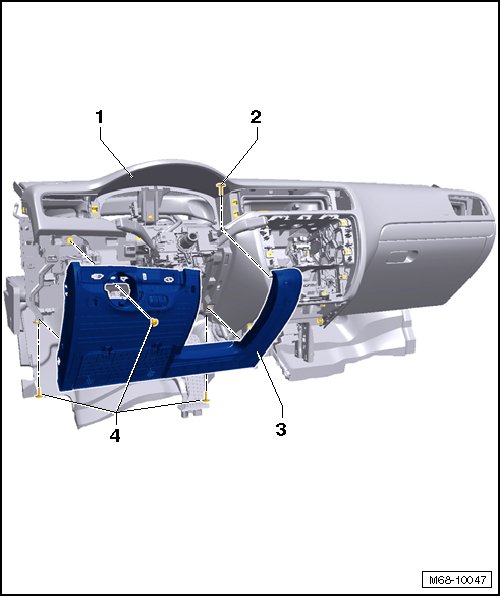 - Remove the left driver side instrument panel cover - 3 - from the instrument panel - 1 - and disconnect the connector from the headlamp range control adjuster (E102).