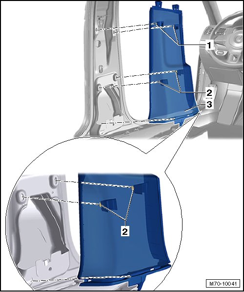 - Remove the clips - 1 - and - 2 - in the trim - 3 - from the body.