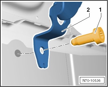 - Guide the belt end fitting with the seat belt - 2 - through the opening in the trim.