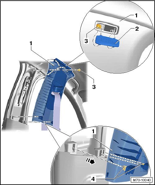 - Remove the clips - 4 - in the trim - 1 - from body in direction of - arrow -.
