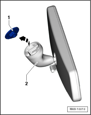 - Remove the retaining plate - 1 - from the mirror base - 2 - in direction of - arrow -.