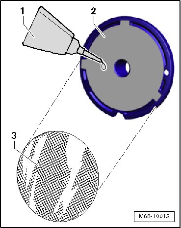 - Apply adhesive - 1 - from the glass/metal adhesive set (D 000 703 A1) evenly over the retaining plate - 2 -.