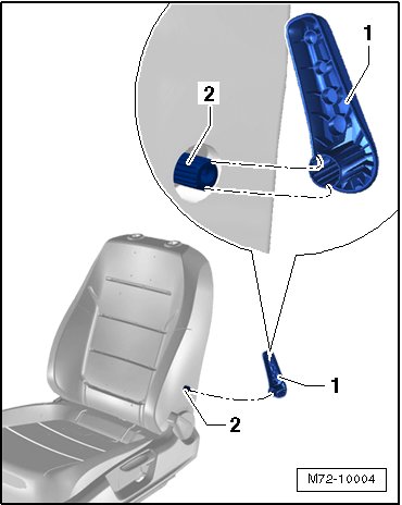 • Make sure the splines on the lumbar adjustment lever - 1 - align with the splines on the shaft - 2 -.