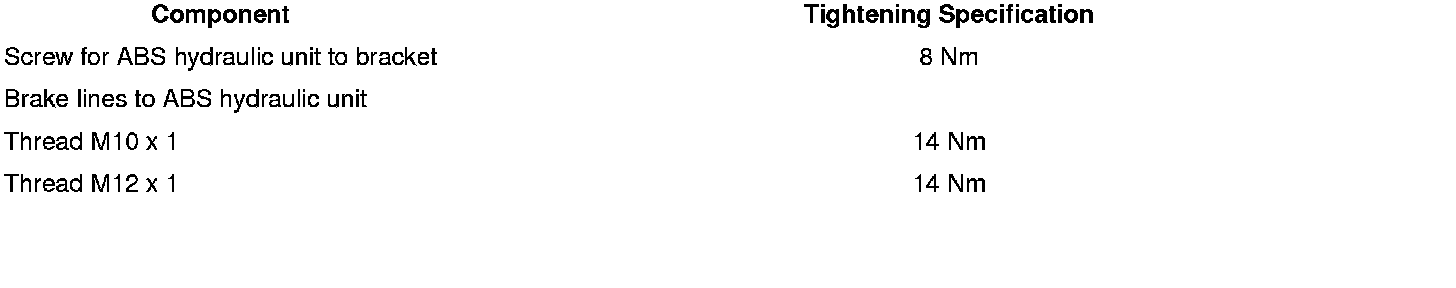 • Brake fluid will leak out if the plugs are removed too early from the ABS hydraulic unit. The system will then not have sufficient brake fluid and will not adequately bled.