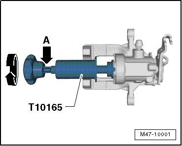 Adjust the brake piston is permitted only with the Piston Compressing Tool (T10165).