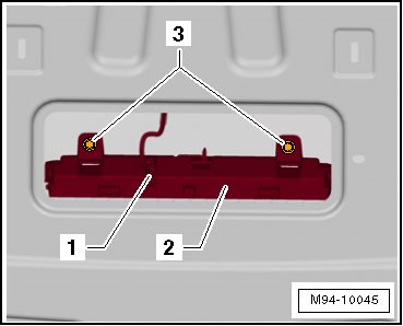 - Remove the screws - 3 - and remove the high-mounted brake lamp.