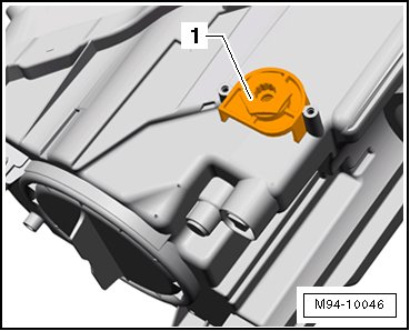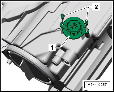 - Mount the new headlamp mounting tab - 1 - on the bulb socket on the headlamp and tighten the screws - 2 - to 1.0 Nm.